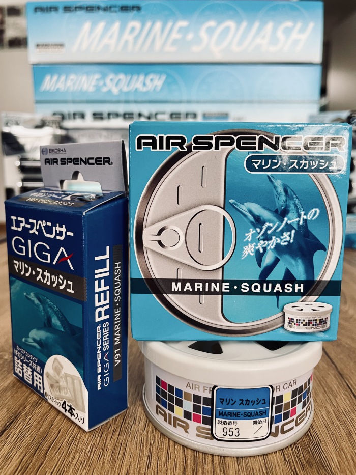 A citrom, lime és narancs pezsgő citruskeverékéhez jazmin és vanília társul, így egy kiegyensúlyozottan friss, üde illat születik. Az Air Spencer Marine Squash illatában az ózonos jegyek tisztán és frissen idézik meg a kellemes tengeri szellőt, a napfényes tengerparti hangulatot és a végtelenül kék égbolt látványát.